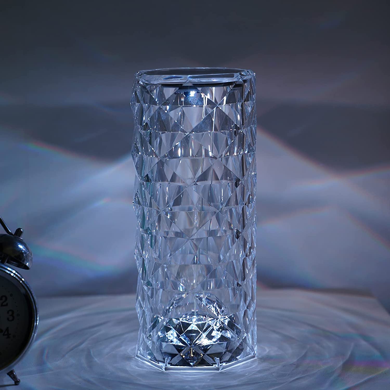 The crystal shade decorative lamp is designed with a diamond-cut surface and will add an enchanted look and feel to your home.